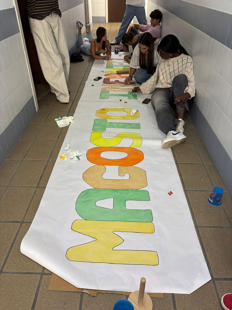 Esta festa non so serviu para divertir aos mais pequenos, senón tamén para desenvolver a creatividade realizando un gran mural e un carro de castañeira, e para fomentar o traballo en equipo.