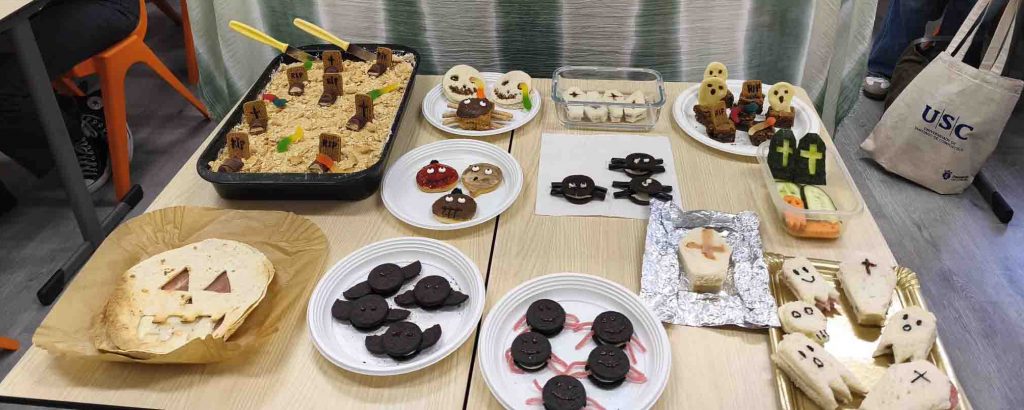 El alumnado de 2º curso del Ciclo Formativo de Educación Infantil participó esta semana en un taller de cocina con temática de Samaín–Halloween, una actividad que combina aprendizaje, creatividad y trabajo en equipo.