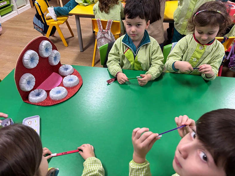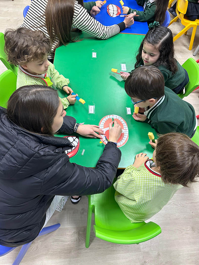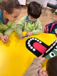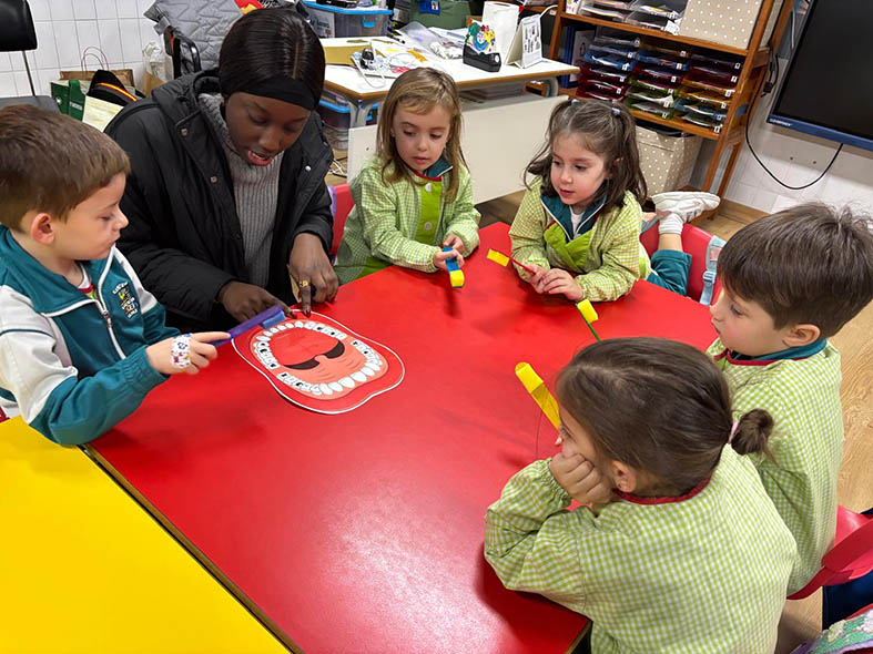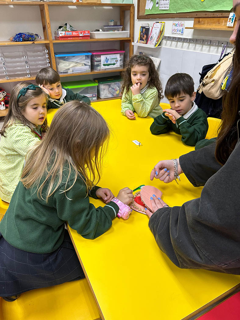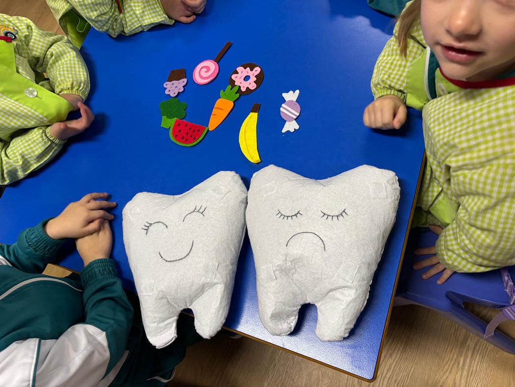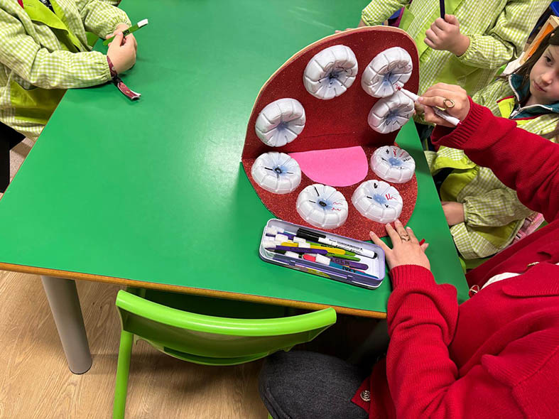 Los alumnos de 2º curso del CS de Educación Infantil visitaron a los de 5º de E.I. para enseñar hábitos de higiene bucodental de manera divertida.