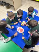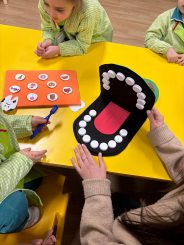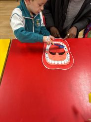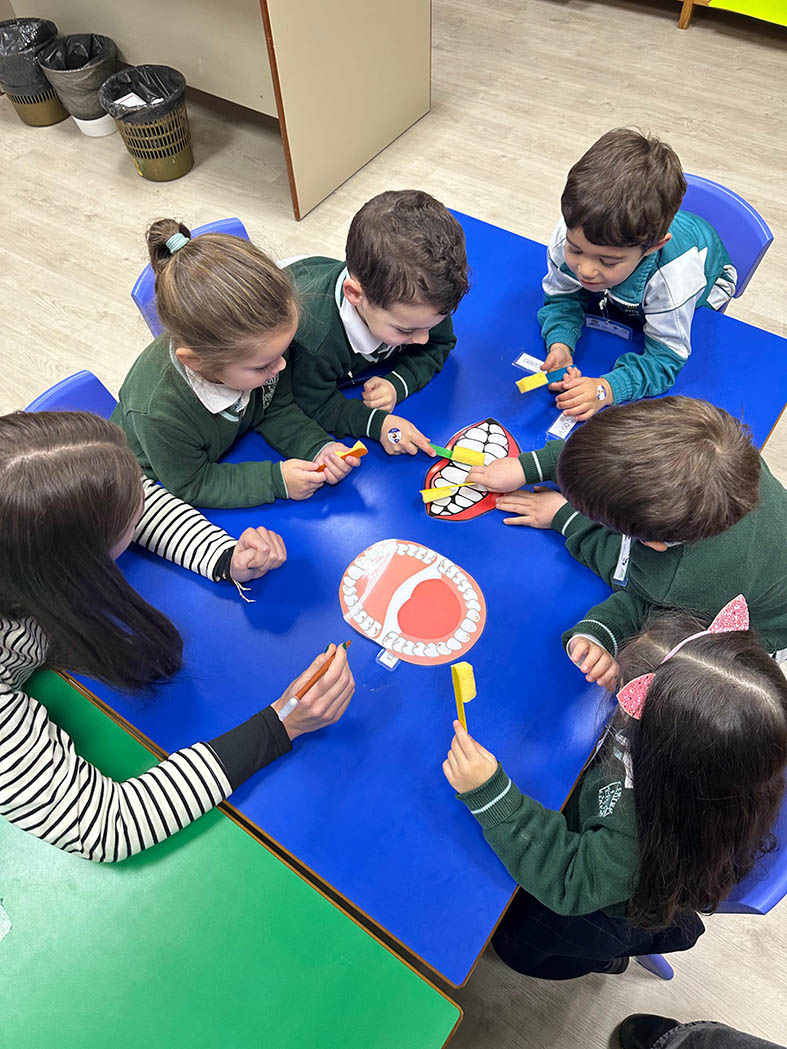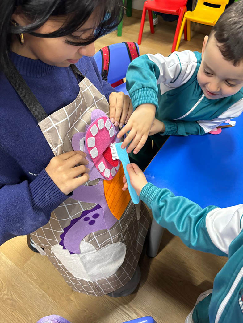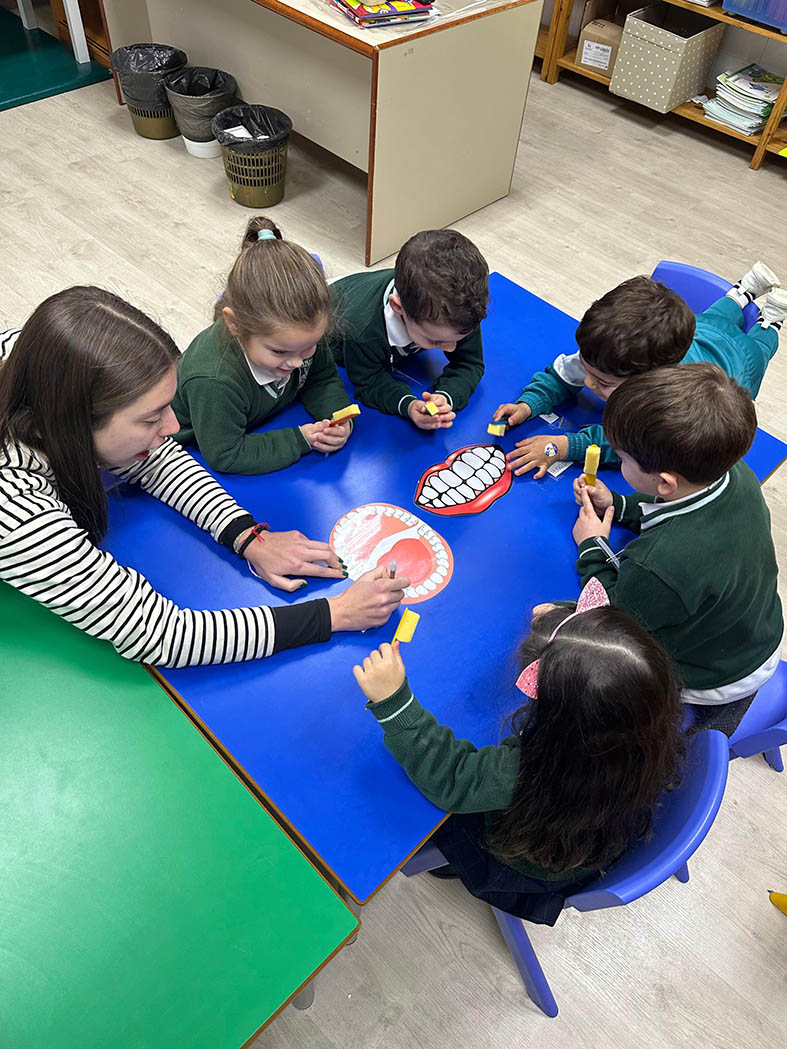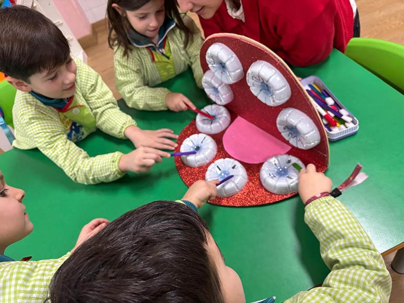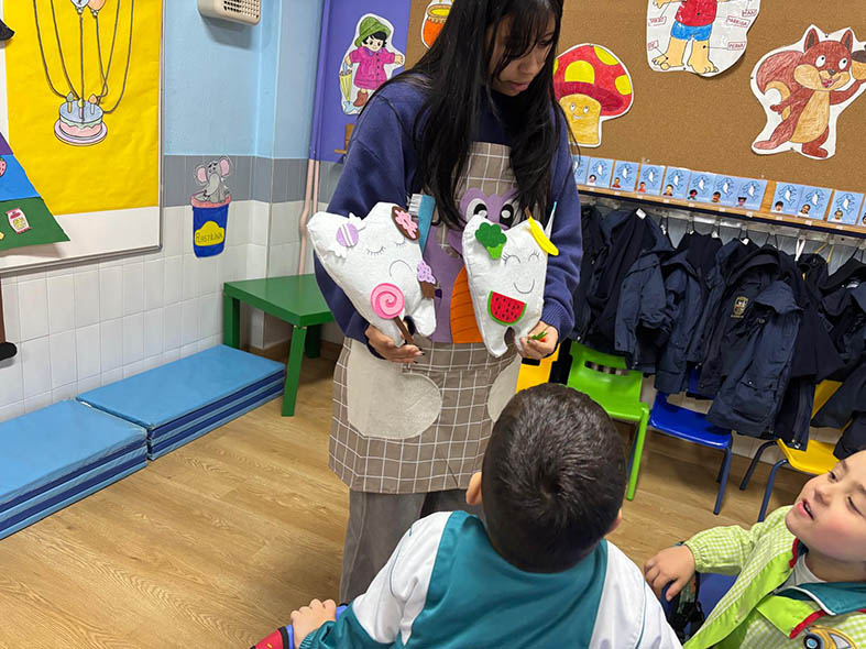 Los alumnos de 2º curso del CS de Educación Infantil visitaron a los de 5º de E.I. para enseñar hábitos de higiene bucodental de manera divertida.