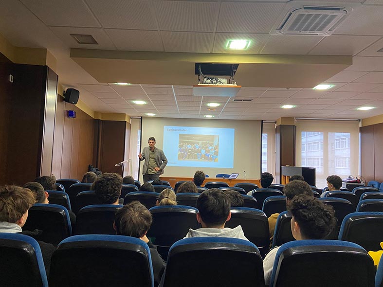 Durante la sesión, Daniel realizó un completo recorrido por la evolución de la compañía, desde sus inicios como Enxendra hasta su consolidación como Docuten. Compartió con nuestros estudiantes una visión integral de sus productos y servicios, la gestión del riesgo, los modelos de financiación, y los estándares de calidad y seguridad que acompañan su trabajo sobre la infraestructura cloud de Azure.