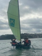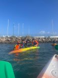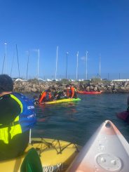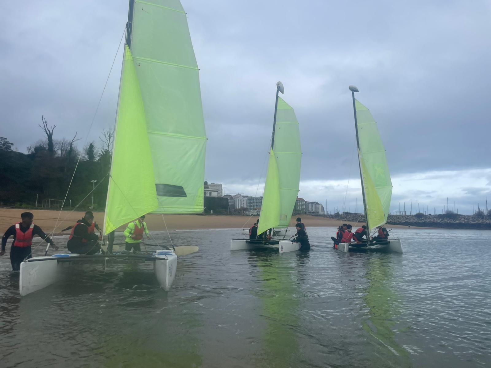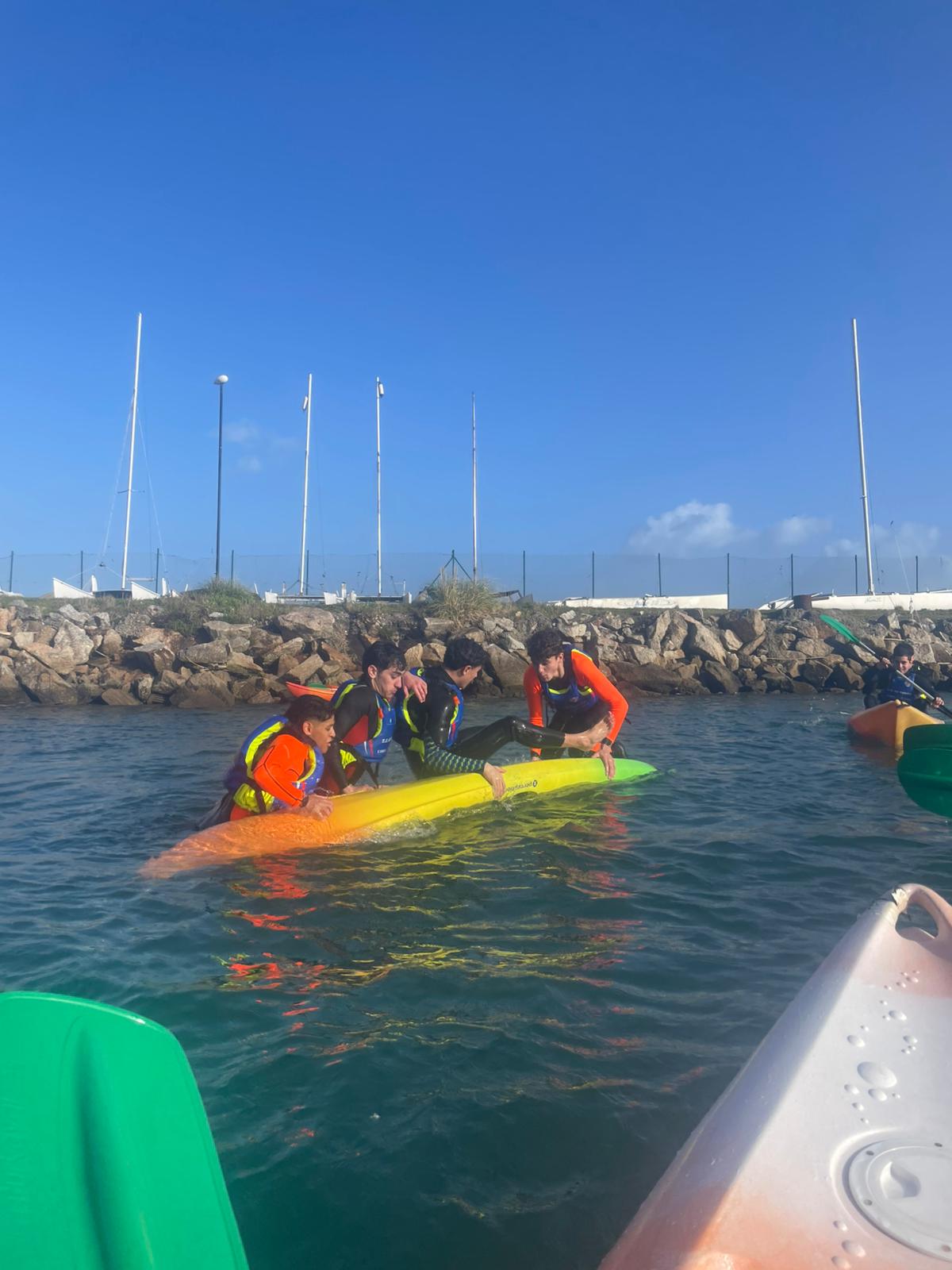 Sesiones de vela y juegos en kayak, para trabajar técnicas básicas de navegación, seguridad, coordinación y dinamización de actividades en el medio acuático.