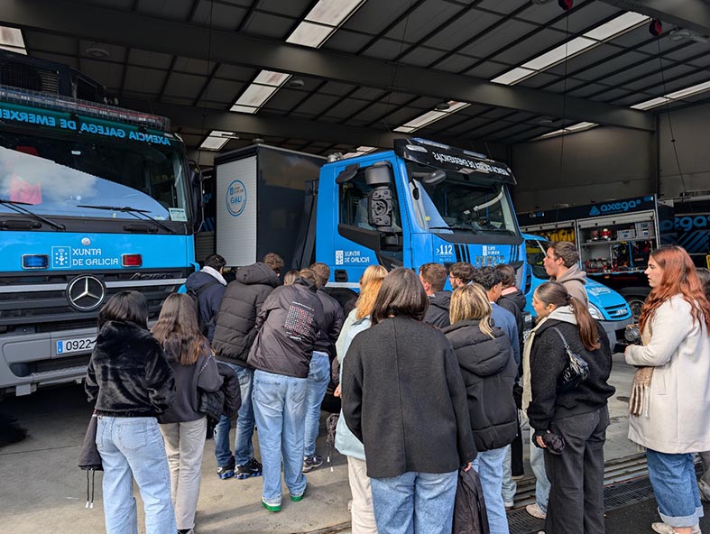 Finalmente, un formador del servicio de urgencias sanitarias 061 impartió una charla sobre el papel fundamental de la coordinación sanitaria en emergencias, la movilización de recursos médicos y la integración con el 112. Asimismo, los alumnos visitaron las instalaciones del 061 para conocer el entorno operativo desde el que se atienden urgencias médicas en Galicia.