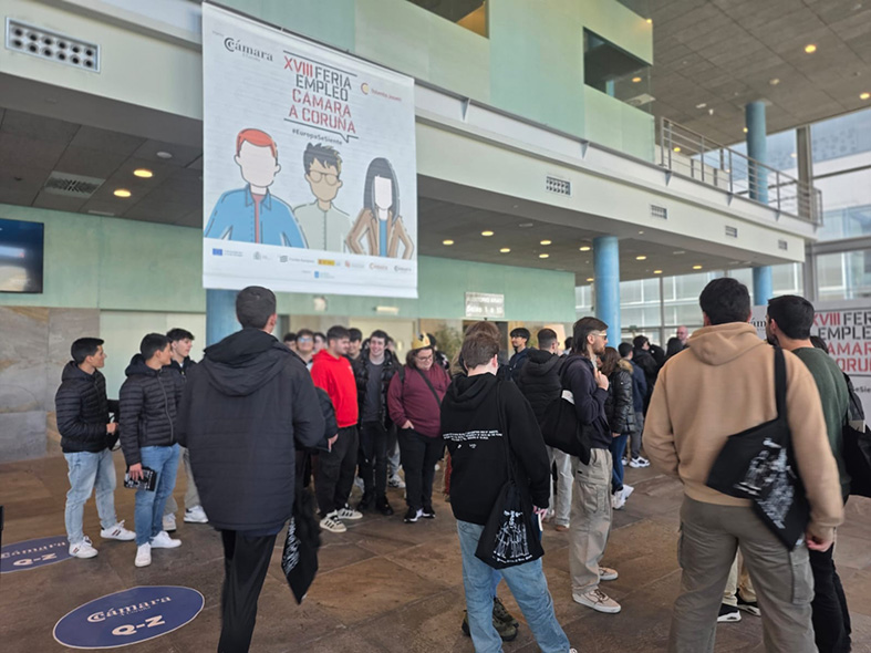 Nuestro alumnado de 2º curso de los ciclos de Informática – Sistemas Microinformáticos y Redes, Desarrollo de Aplicaciones Web, Desarrollo de Aplicaciones Multiplataforma, y Administración de Sistemas Informáticos en Red – participó este martes en la XVIII Feria de Empleo Talento Joven, organizada por la Cámara de Comercio de A Coruña en Palexco. Una cita indispensable para ellos, que pronto darán sus primeros pasos hacia el mundo laboral.